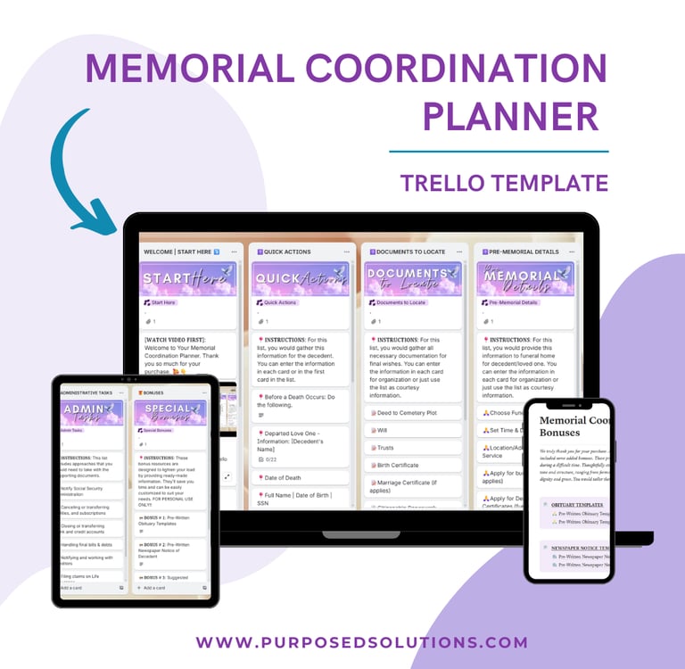 Our digital templates are designed to bring structure, clarity, and confidence to important moments and professional goals. From memorial planning and career organization to launching a notary business, each template provides guided systems you can customize to fit your needs—without the overwhelm.